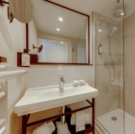 - Salle de bain avec douche, sèche cheveux, chauffe serviette